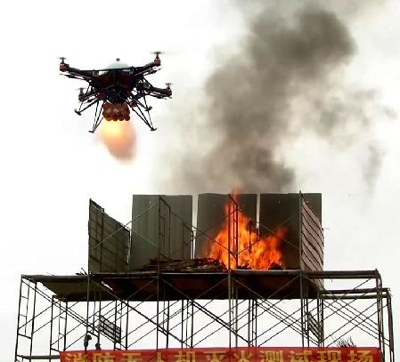 该企业负责人曹兵介绍,这种无人机主要功能是进行高层消防灭火,它不但能喷水,而且还能发射灭火弹,有效地针对高层火灾进行快速扑救。