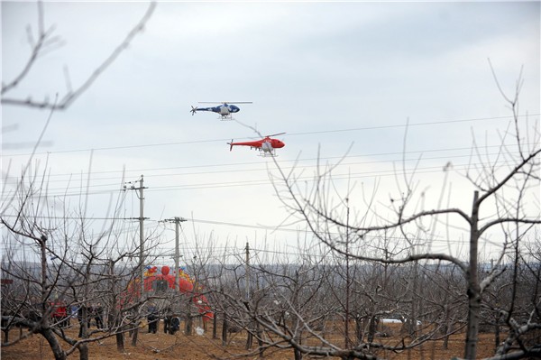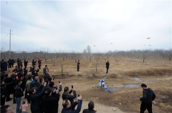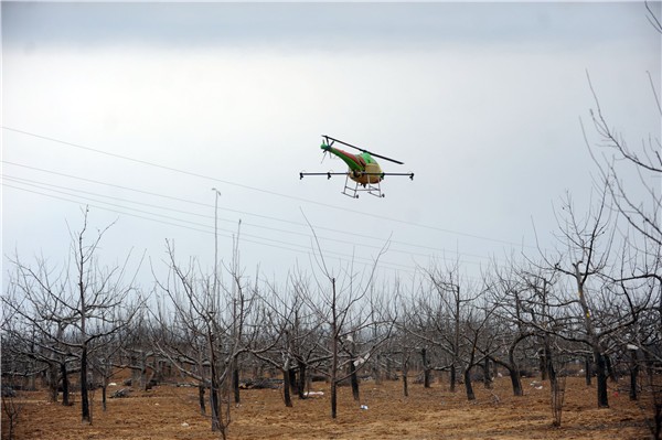 “实在是好!”张创德赞不绝口,“想都不敢想,这无人机还能洒农药哩。”在东赵村,张创德种植着20亩苹果树,每年要为果树喷洒三到四次农药。每次喷洒农药都得三天,有时正值酷暑,张创德和老伴儿背着药筒顶着炎日,喷洒农药显得尤为辛苦。“辛苦还不算什么,关键是农药都有毒哩,人在这作业环境里不安全,怕是会害病。”张创德告诉记者。