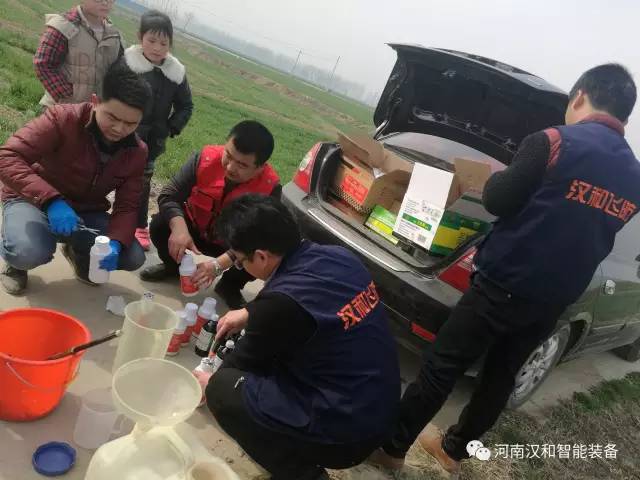 根据小麦病情,依据需要喷洒亩数,计算出亩用药和用水量,对所需用药精确配比。(此次所需药剂由老乡自行提供,希望飞防专用药剂能够尽快推广开来)