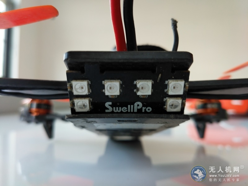 斯威普雨燕尾部有6个LED的信号灯,在通电、起飞、报警时会呈现出蓝、绿、红三种不同的颜色(详情参见之后测试图)。