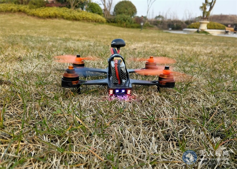 无人机网测评员测试发现这款穿越机如果平稳的操作(没有大幅的起落或暴力的玩法时)一块3S电池达到报警电量(高于25%低于50%的时候)时大约为15分钟。两侧的LED等会开始闪烁红灯(非低电量时处于熄灭状态,只有急飞或急停时会闪烁一下),并间歇性的发出滴滴的报警声,如果该状态继续持续飞行红灯的闪烁或变得更加急促,警示声也会更加频繁。