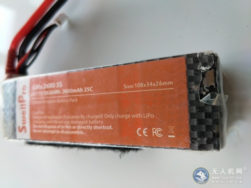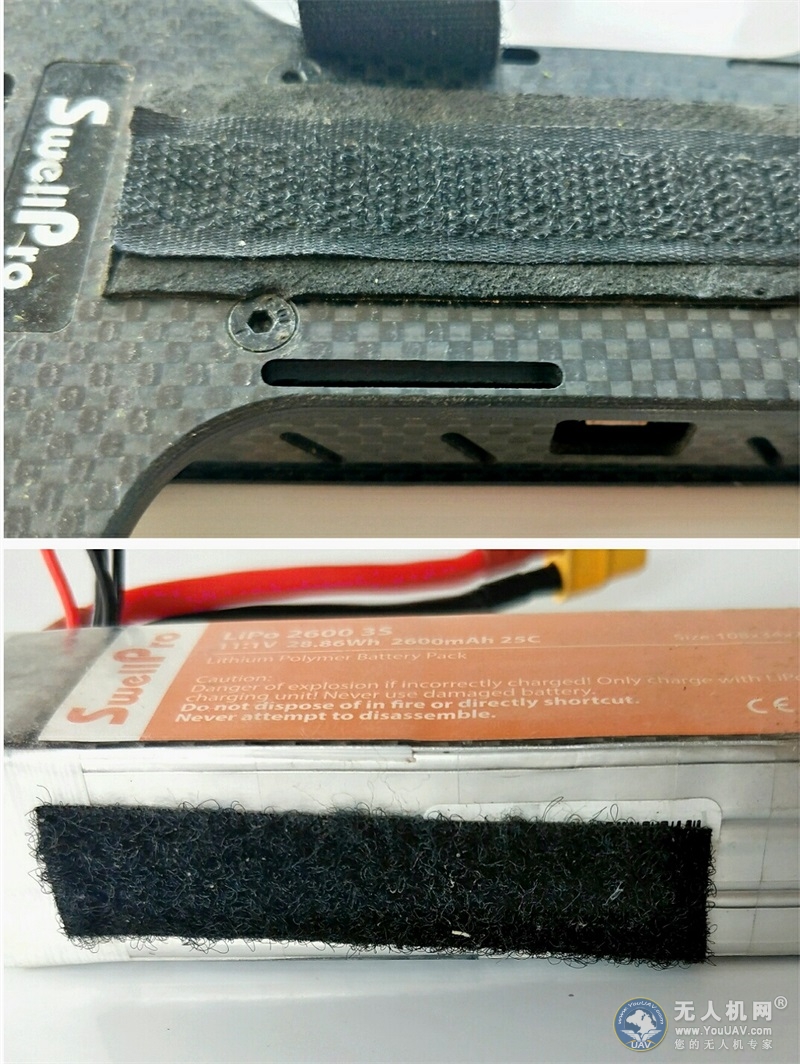 飞行中斯威普电池虽然被固定好但是飞手在进行穿越旋转、落地碰撞以及正面撞击的时候无法保证电池不发生生左右偏斜,如果飞手不及时的发现和调整会导致电池的姿态则很容易被桨叶划伤甚至引发更严重的伤害。
