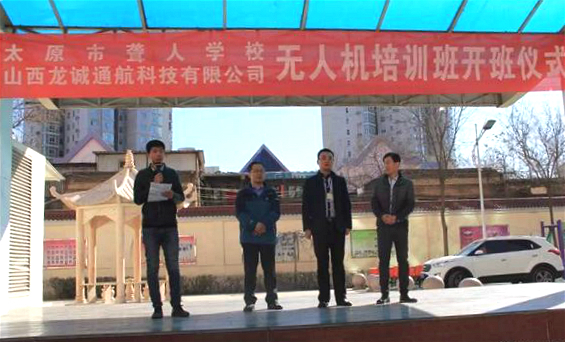 2017年3月6日上午9时,太原龙诚众创空间有限公司负责人携手入驻企业山西龙诚通航科技有限公司代表,来到太原市聋人学校举行无人机培训班开班仪式。