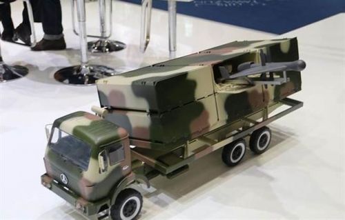 中航技近日在阿布达比国际防务展览会上所展示的ASN-301反辐射无人机发射车模型。