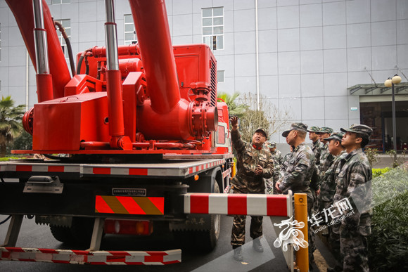 教官讲授抽水车操作方法。