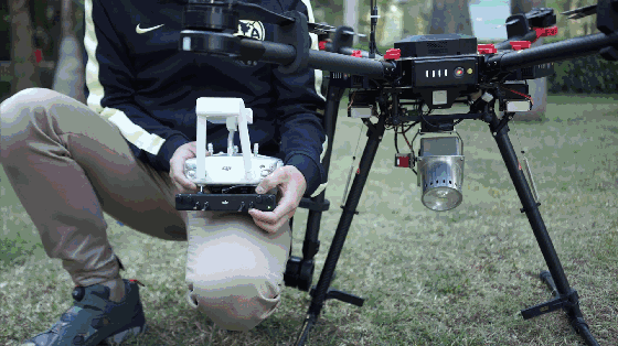 大疆行业应用集成商大智无疆研发的无人机探照灯模块,配合经纬M600扩展通道的使用,可直接通过经纬M600遥控器触发开关,从而调整探照灯俯仰角度,甚至亮度、焦距等功能。