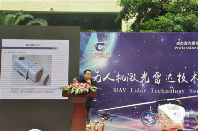 宋经理简单的介绍了吉鸥GL-70激光雷达的设计特点以及其相关的应用领域。通过近几年实际应用激光雷达进行测绘的案例,向现场嘉宾讲解了吉鸥GL-70无人机激光雷达是如何完成远距离线路巡检,完成彩色点云、杆塔建模及电力线路危险源分析等行业应用实例的。