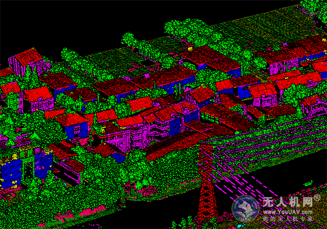 无论是建筑物,植被和道路都可以将收集到的数据通过云点和颜色将其标记出来