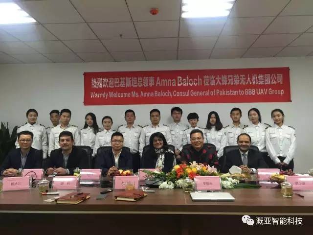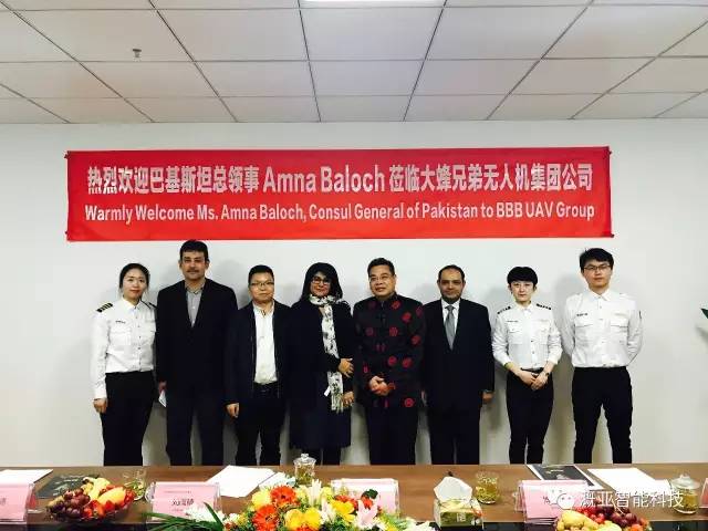 总领事Ms.Amna Baloch女士表示,在中国法律法规允许的情况下,邀请公司董事长赵元贵先生和总经理谢莉女士到北京与巴基斯坦国防武官洽谈无人机在维稳、反恐、军事等领域的合作,或者在方便的情况下让巴基斯坦国防武官到贵公司来会晤。