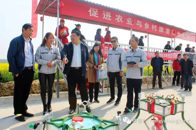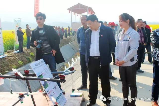 县委副书记卢治轩(中间)、县农业局局长戴熙良(左一)参观我司无人机