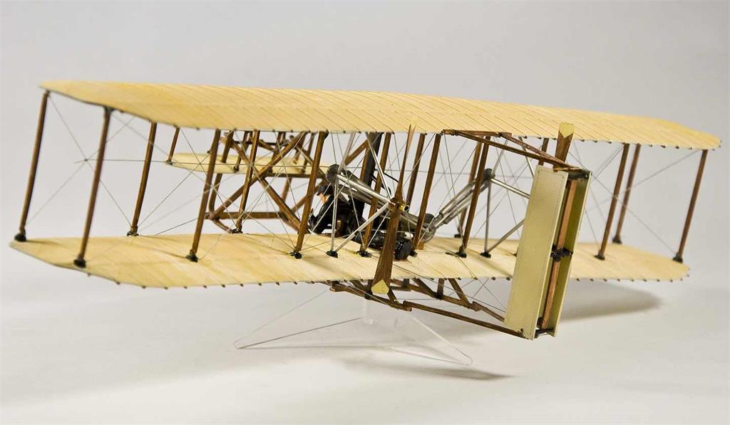 在前几架滑翔机的基础上,莱特兄弟制造了第一架有动力的飞机——“飞行者一号”,这是一架双翼机,前面有两片升降舵,后面有两片方向舵和两个推进式螺旋桨,操纵索集中连在操纵手柄上。发动机由莱特自行车公司的技师查理·泰勒设计制造。