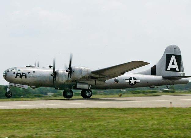 1945年8月,B-29轰炸机向日本的广岛和长崎投掷了原子弹。 第二次世界大战后,B-29在美国空军继续服役了很长一段时间(包括朝鲜战争,19个不同的变种机型扮演了多种多样的角色——气象侦察、空中加油和作为超音速飞机研究的实验台),直到20世纪60年代早期全部退役。