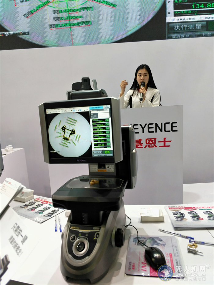 KEYENCE基恩士是一家做传感器和测量仪器的大型企业,目前展示的是一款快速测量物品尺寸的测量仪,现场有很多观众主动上前体验产品。