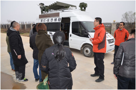 技术人员现场讲解“空降兵”反无人机指挥车