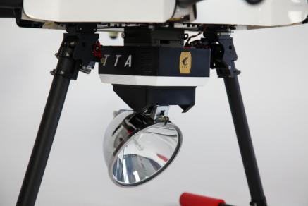 天途无人机载照明装置成功升级,实现旋转功能,可调整俯仰角度达到90°,即飞机悬停高度在100米时,可照射有效半径达到500米!
