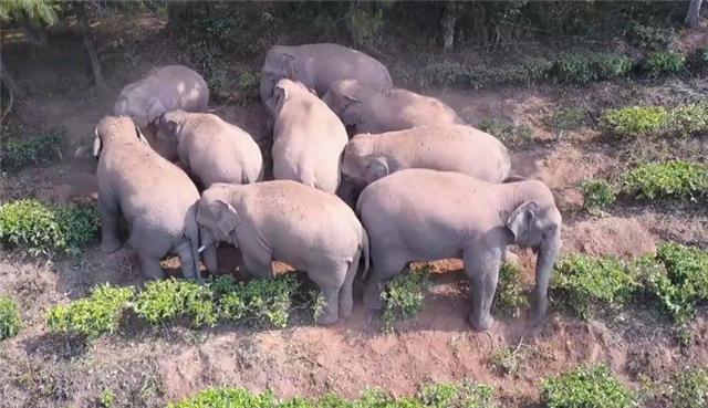 本周二,云南江城的野象监测员发现一小象疑似受伤,立刻派无人机近距离监测。警觉的成年大象立刻把小象保护起来,怒对无人机,险些把靠太近的无人机扇飞。