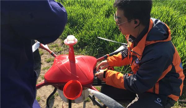 (泰州当地农户加注农药/飞手更换电池)