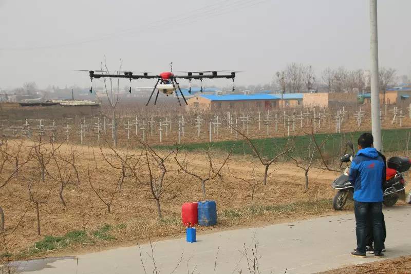 3月16日,一架农用无人机在大荔县韦林镇仓东村地头上空盘旋,引来了近百人围观。一位老农说“用飞机播撒农药还真稀罕,我这是第一回亲眼看见,真方便、省事!”
