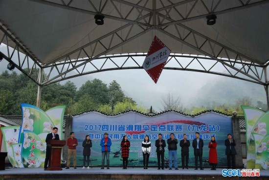 3月21日,2017四川滑翔伞定点联赛(九龙站)暨中国民用无人机驾驶航空训练基地授牌仪式在绵竹九龙镇举行,四川省航空运动学校校长、四川省航空运动协会副会长邓华,中国AOPA无人机事业部主任王夏峥、德阳市体育局副局长颜昌平、绵竹市副市长罗桃参加了授牌仪式。