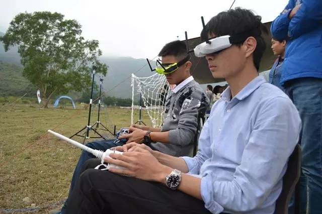 来自灰熊俱乐部的老将告诉记者:“若在雨天,竞速机撞上了周围的小树枝等沾了水的物体或是在比赛过程中摄像头沾了水,飞手的视线会变得十分模糊,出现炸机的几率就会上升。记者随机从身旁的飞手处借来VR眼镜,像其他观察员那样观看了这场比赛。”戴上眼镜的刹那间,视野一片开阔,但不久一滴雨水打在了摄像头上,瞬间视线一片模糊,由于视野越变越模糊,不得不摘下眼镜还给飞手。但场上飞手还是继续坚持驾驶穿越机完成了全程飞行,甚至比赛结束后,飞手陈颂文还意犹未尽的让竞速机继续在赛场上飞行,任凭风吹雨打。
