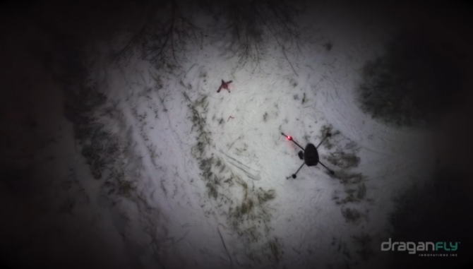 Draganfly表示,Draganfly Commander四轴无人机配备的ASM多挂载稳定平台可搭载SureFire旗下的双光束增强型LED照明系统,LED灯将安装在相机云台系统上,提供高达2000流明的亮度。目前该无人机已经进行多次飞行演练,成功完成模拟的夜间搜救任务。