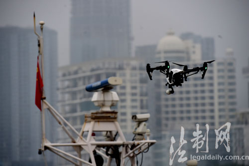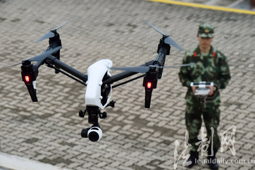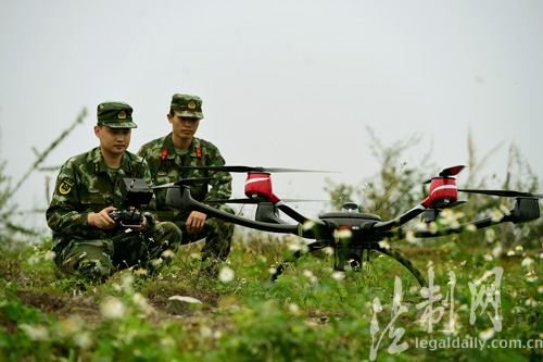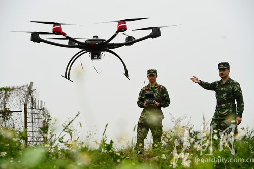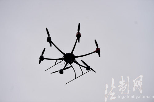 图为3月27日,四旋翼无人机正在进行低空侦查