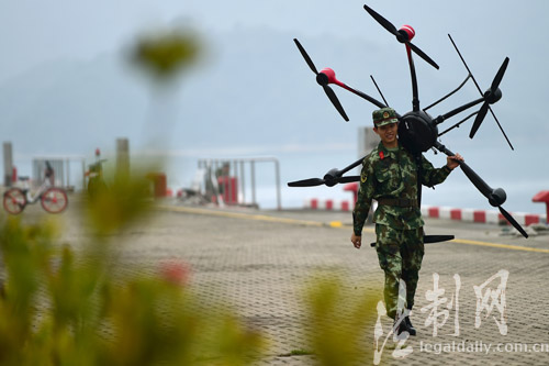 “八向操作杆、二十四个键位,一次小失误就可能会造成几十万一架的无人机坠毁,绝不是小孩玩遥控飞机的概念!”飞手、通信参谋龙聪中尉介绍,每名飞手都至少经过100个学时的计算机模拟操作后才能进行真机实操,而不同地域的地理、气候、环境又对无人机飞行有不同的要求;“考验技术、更考验心理,说是无人机,开起来比大飞机还要小心谨慎”飞手、士官吴小海说。现场,记者看到,飞手运用六旋翼无人机和四旋翼无人机对陌生地域进行巡航,无人机升空800米后,附近的山、海、建筑尽收在显示屏的方寸之间,而飞手们神情专注的盯着屏幕、屏住呼吸,与遥控器融为一体。