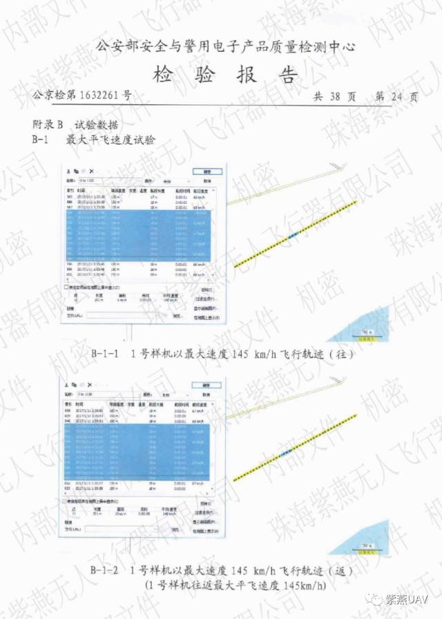 (图为国家安全与警用电子产品质量检验报告)