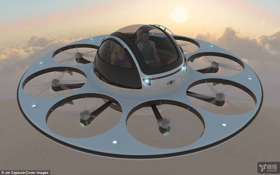 这一名为 I.F.O 的无人机由意大利 Jet Capsule 公司的 Pierpaolo Lazzarini 设计,采用两座式设计。I.F.O 载人无人机由 8 个转子引擎驱动,最高时速可达 190 公里/小时,上升高度可达普通直升机的平均驾驶高度。