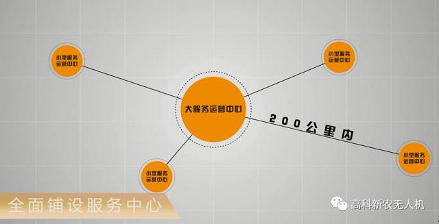 高科新农意识到应用普及的短板,率先计划在全国建立10个客户服务中心和100个客户服务基地,形成培训、技术保障、示范、农业服务的运营体系;通过运营体系,提供植保市场供需信息、农田病虫害,数字信息、不同作物作业飞行参数、航空药剂销售信息等,可利用大量的数据信息和上下游产业资源为用户提供规范化的植保解决方案和其他农业应用解决方案。