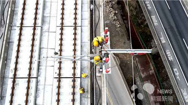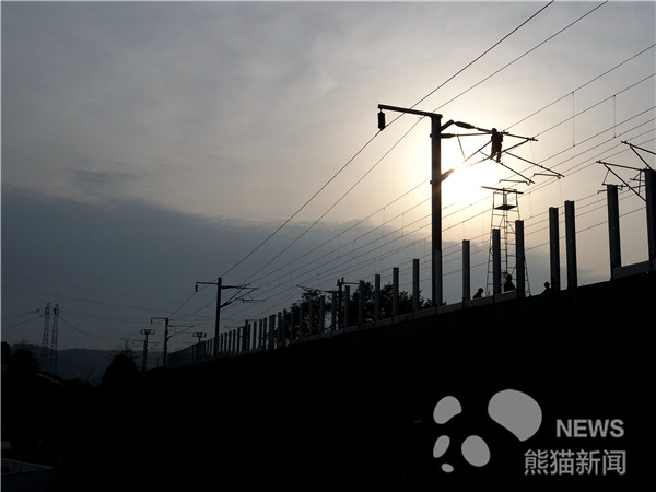 西成客专全程运行速度在250km/h,高速运行下的电力动车组对供电设备要求极高,施工人员逐根蹬杆作业的方式对设施进行调校。
