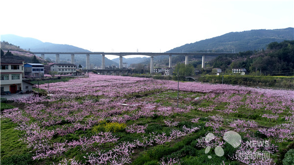 西成客专四川段沿线穿越平原、丘陵地区,农产丰富,特别是在江油市二郎庙镇这里盛产的“白花桃”更是特色。春暖花开之际,白花桃林在高铁青岗林大桥下方如粉白的花海美轮美奂。