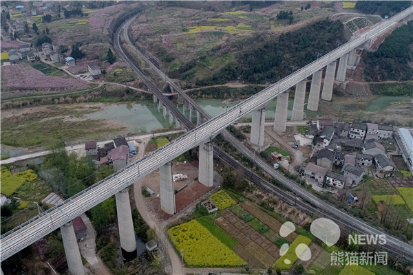 3月29日、30日,我们利用航拍镜头在西成客专四川段江油至广元境内展示了春光下的高铁建设场景,也提前为旅客乘坐西成客专动车上领略春夏美景的轮廓进行了提前打探。西成客专四川段穿越土地肥沃川北地区,加之其80%的桥隧比横跨南北,这段建有76座总长约42公里的大桥在油菜花、桃花盛开的天府平原成为了一道秀丽的风光。