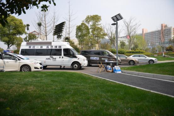 在现场上海资誉科技技术人员利用“空降兵”察控一体反无人机指挥车完成了对深圳大疆、小米和法国Parrot 3 种品牌无人机从探测、跟踪到处置的全流程管控演示,参观领导对系统性能非常满意。