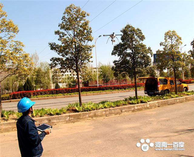 4月1日,南阳供电公司输电运检部人员,正在淅川县淅西路口220千伏楚荆线37号塔处,用无人机对一处隐患进行排查、鉴定。