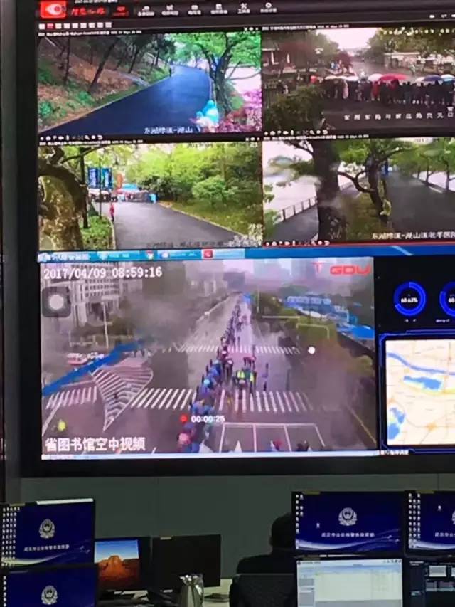 为确保赛事“安全、有序、圆满、精彩”,武汉市公安局全警动员,动用天眼、无人机、巡警队、巡逻艇,开展“水陆空”全方位立体防护,为“汉马”保驾护航。