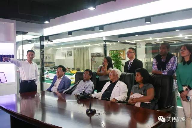 2017年4月8日上午,为深化双方各项合作事宜,马达加斯加驻华大使维克多、秘书长孙治国一行莅临艾特航空科技考察交流。