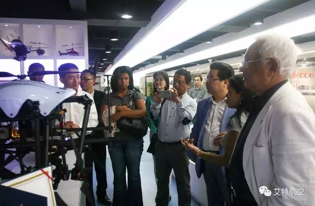 艾特航空科技董事长林卫东热情接待了他们并带其参观了艾特航空展厅,详细了解艾特AT系列无人机技术特点及各项实际应用吊舱。