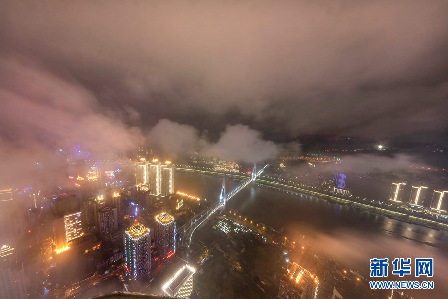 在重庆,不仅有李商隐“巴山夜雨涨秋池”的抒情描绘,也有“雨夜山城梦幻如画”的奇特美景。4月9日晚,一场细雨从天而降,蒙蒙雨雾将重庆渝中半岛层层环绕,构出一幅绝美如画的城市雨夜美景。