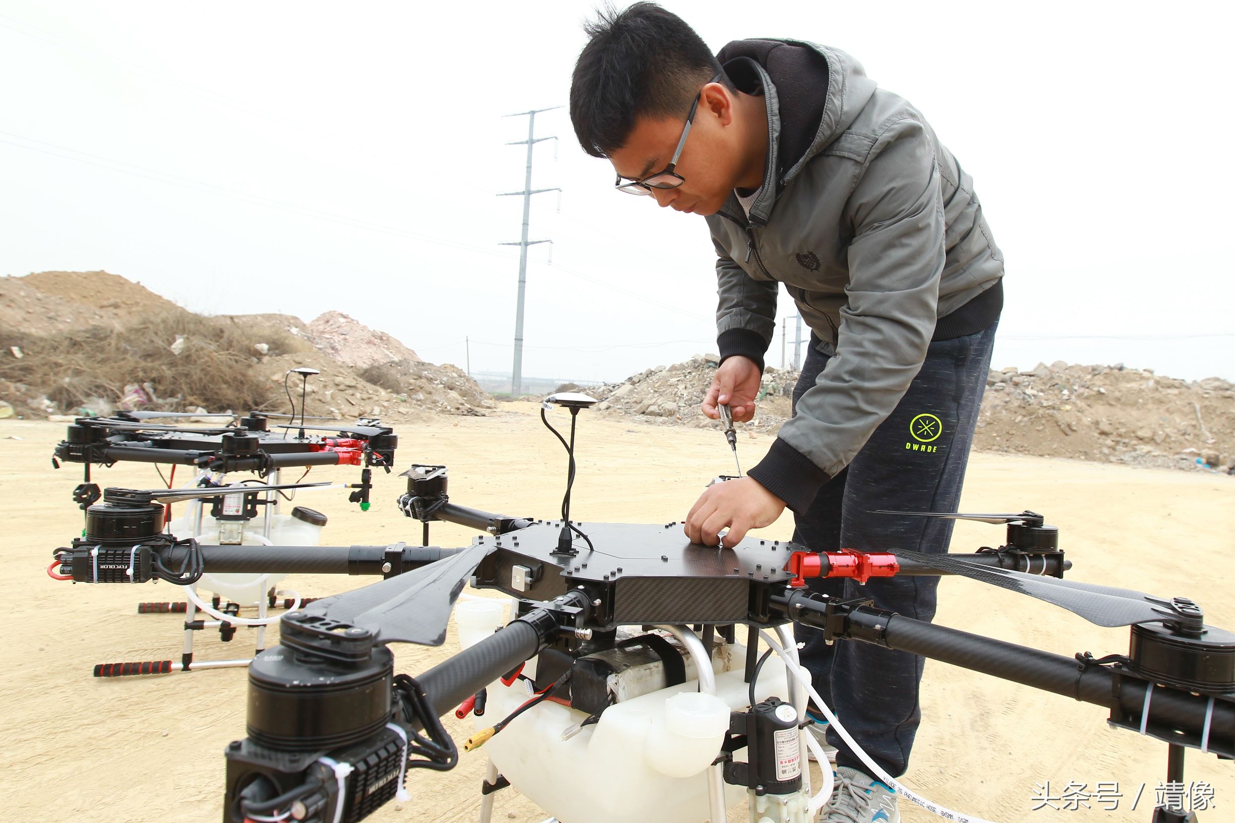 张净昆认为他们研制的,“其实是一台可以飞着喷农药的‘农机’。”图为试飞成功后,张净昆高兴地和伙伴们击掌庆祝。目前,他们的创业公司主要做服务性质的业务。“别人下单,我们工作。”江泽表示,仅仅在这个4月份,他们已经接了16万亩防治小麦的订单。