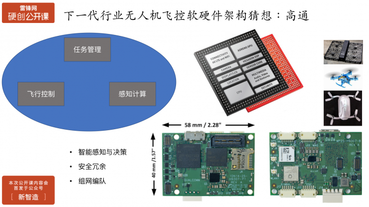 高通芯片把CPU、传感器等目前所有航拍类所需要的零部件都整合到了一块板卡上,在智能化这块做得很不错了,用户拿到之后直接在上面迭代软件算法就可以了。但是在安全性方面高通并没有做太多的冗余机制,主要是因为其面向消费类电子。而开放性这块高通没有办法做更深度的扩展。