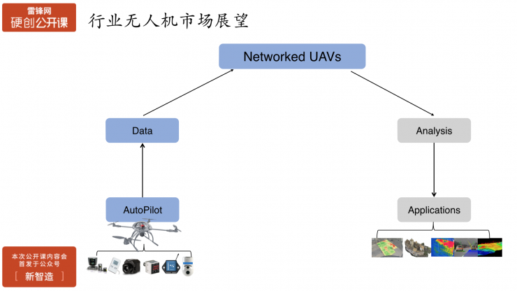 从技术角度来讲,未来无人机一定会集成更多设备和传感器,这些设备和传感器都通过飞控系统进行采集、存储、预处理。如果这个数据还有全局价值的话,就会被发送到远程,比如说地面站。当数据越来越多,即会获得更大的价值,使用到更多的领域里面。