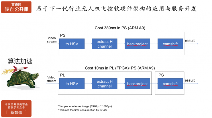 我们做的就是要把前三部放到FPGA里去加速,最后一步的分析算法放到CPU中,整个时间只用时10毫秒左右,整个性能就提升了一大截,能够帮助飞机进行实时的环境感知,并进行决策。