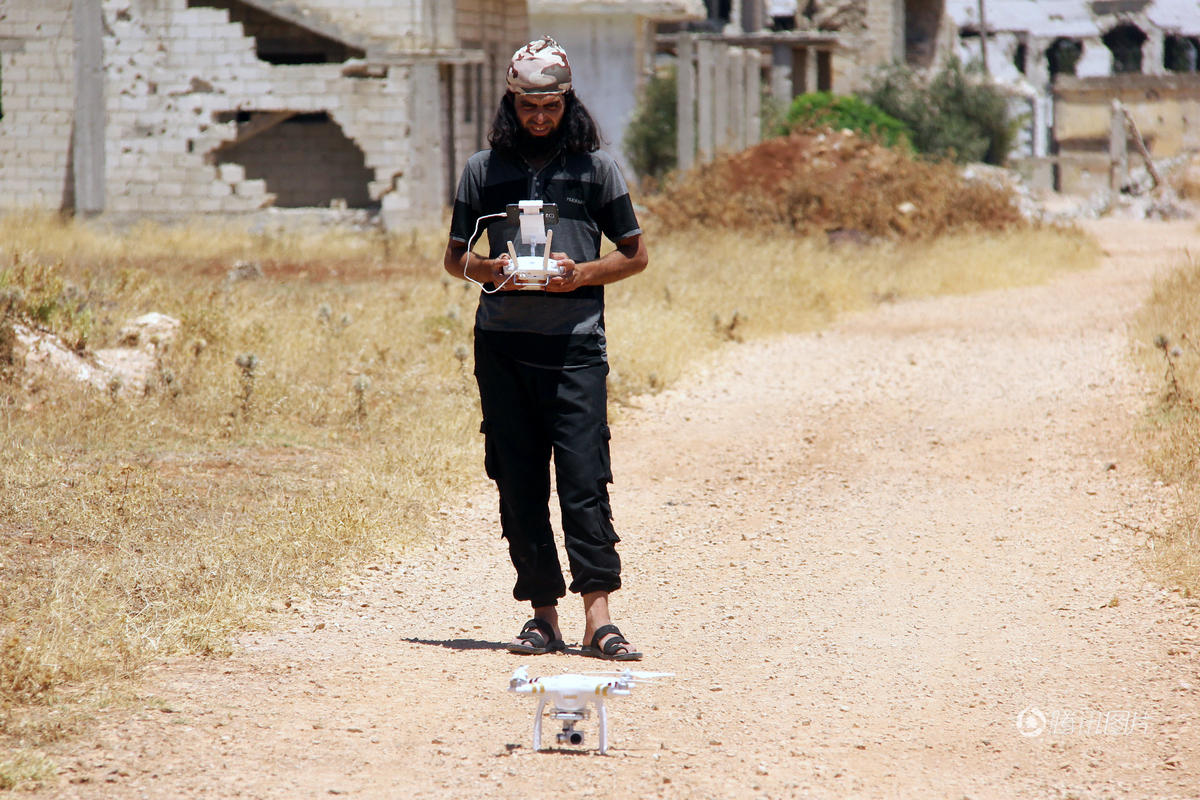 4月12日,叙利亚反政府武装操作大疆“精灵”4无人机进行军事侦察。