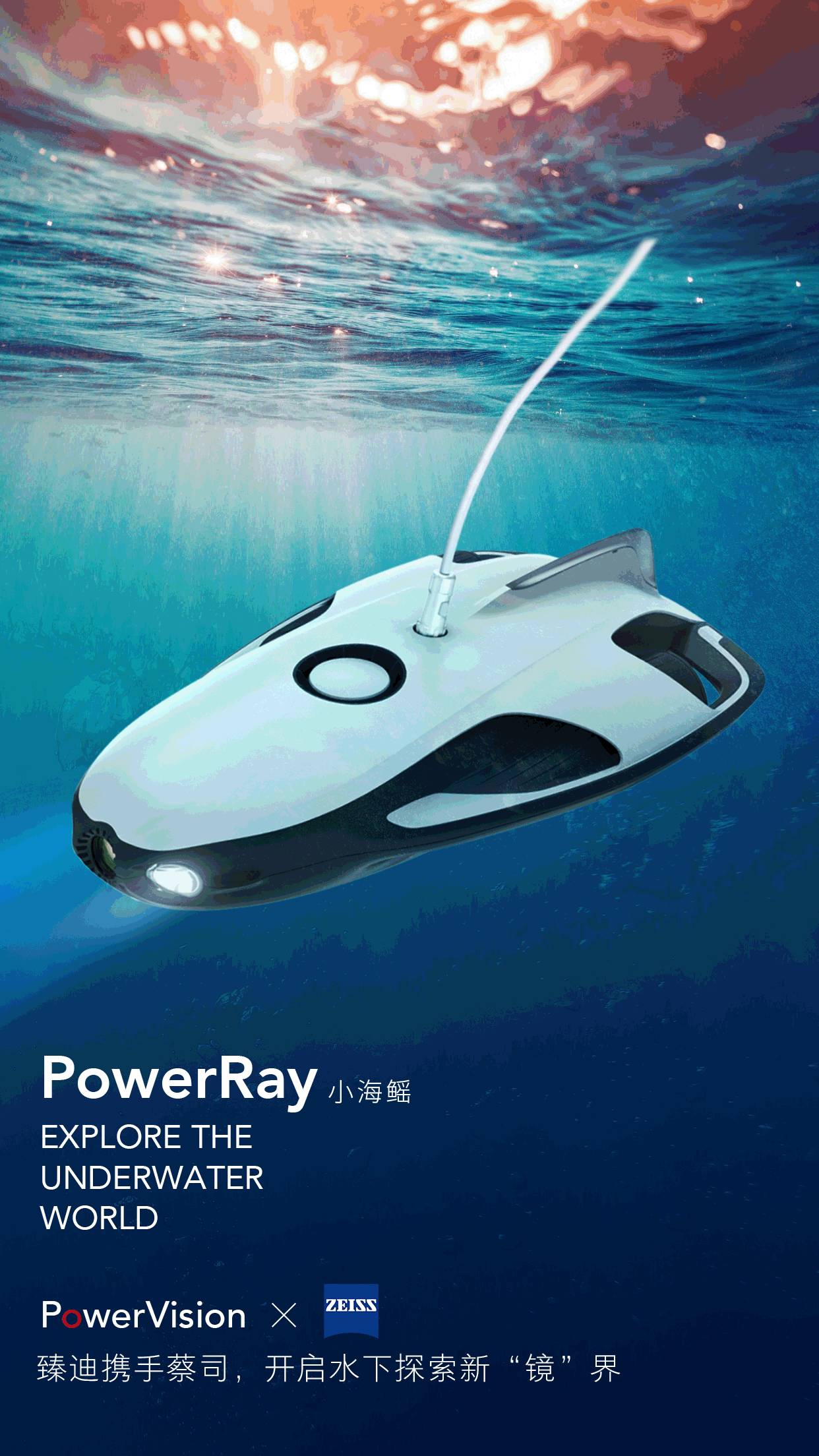 此次臻迪与蔡司合力打造的第一款产品,就是大师版PowerRay小海鳐配备的VR眼镜。对于想要身临其境体验水下第一视角的使用者,可以选择通过PowerRay的VR Goggle,利用虚拟现实技术来实现更令人兴奋的水下视野。小海鳐VR眼镜由臻迪与蔡司合力打造,并将与PowerRay小海鳐搭配售卖。用户可以通过手机app选择小海鳐的行驶模式、速度并进行光线设置,从而体验到更加有趣的沉浸式水下体验。