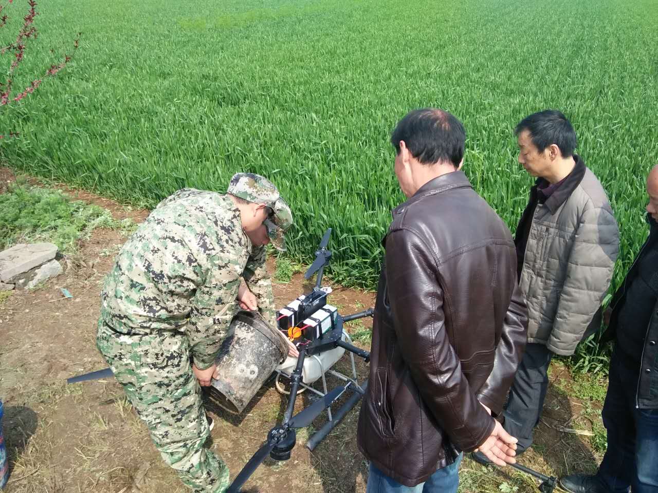 4月12日,在安字营镇白坡村,一架小型无人飞机在麦田里喷洒农药,吸引众多村民前来观看。眼下正是小麦抽穗扬花期,也是条锈病、赤霉病等小麦重大病虫害的高发期。为有效做好麦田“一喷三防”工作,安字营镇姜庄村永春中药材种植有限公司花费60余万元购进了9架无人机。