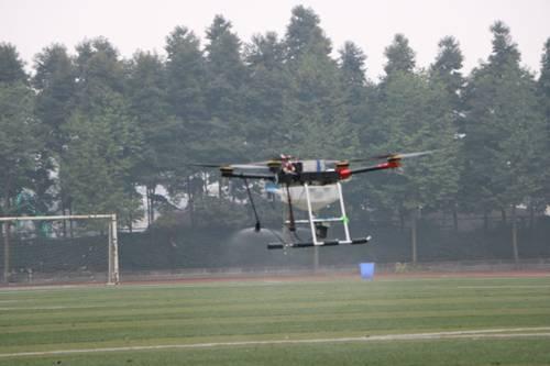正在飞行演示农药喷洒