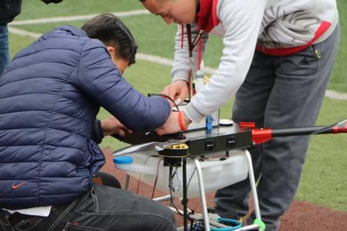 图为无人机团队调试飞机