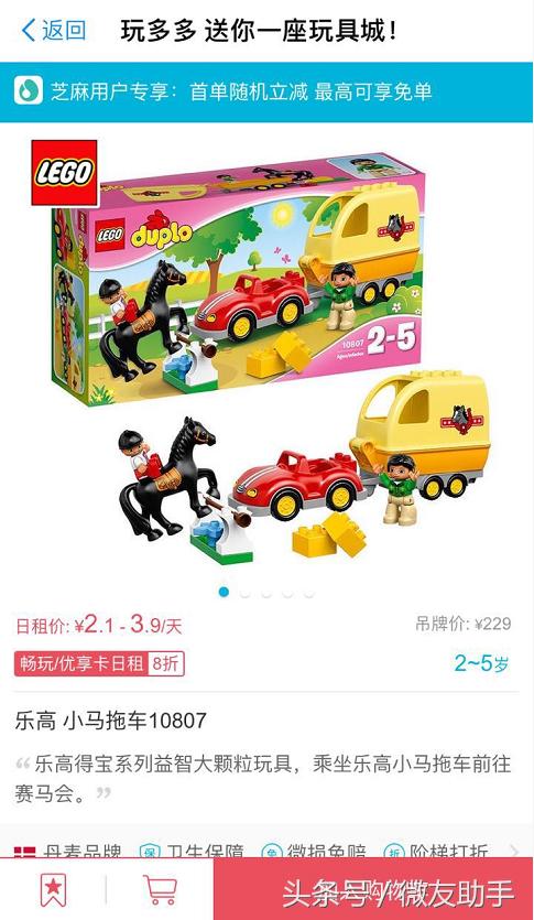 先来看看玩具是怎么借还的,我随便点开了一个玩具商品,就可以看到每日的租金。如果说怕小孩子买了玩具后玩一两天就没兴趣了,那么来“租玩具”会是个不错的选择。