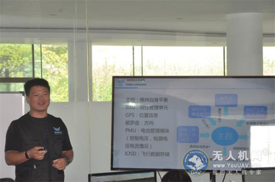 上午的理论课程主要分为两大板块:多旋翼无人机的基本认识和飞行注意事项。据秦教练介绍,多旋翼无人机系统构成主要分为六大板块:主控、IMU、GPS、磁罗盘、PMU、IOSD。它们的作用分别为:主控:维持自身平衡。IMU:惯性管理单元。GPS:位置信息。磁罗盘:方向。PMU:电池管理模块(控制电压、检测电流情况)。IOSD:飞行数据储存。飞行器总共具有三种飞行模式:GPS模式、姿态模式、手动模式。秦教练分别对着三种模式向学员们进行了详细的介绍。GPS模式:必须要有选配GPS模块、除了能自动保持飞行器姿态平稳外,还具备精准的定位功能,在该种模式下,飞行器能实现定位悬停,自动返航降落等功能。GPS模式也就是IMU、GPS、磁罗盘、气压计全部正常工作,在没有受到外力的情况下飞行器将会一直保持当前的高度和当前的位置。姿态模式:适合于没有GPS信号或GPS信号不佳的飞行环境,能实现自动保持飞行姿态和高度。但是不能实现自主定位悬停,因为没有了GPS的地理位置信息,所以飞行器在此模式下将持续不稳定的进行漂移,无法稳定悬停在某一点。手动模式:多旋翼飞行器的飞控系统基本停止动作,系统不会自动保持飞行姿态和高度的稳定,完全由飞手手动控制。除非操作者操纵技能非常熟练,否则很难操作。